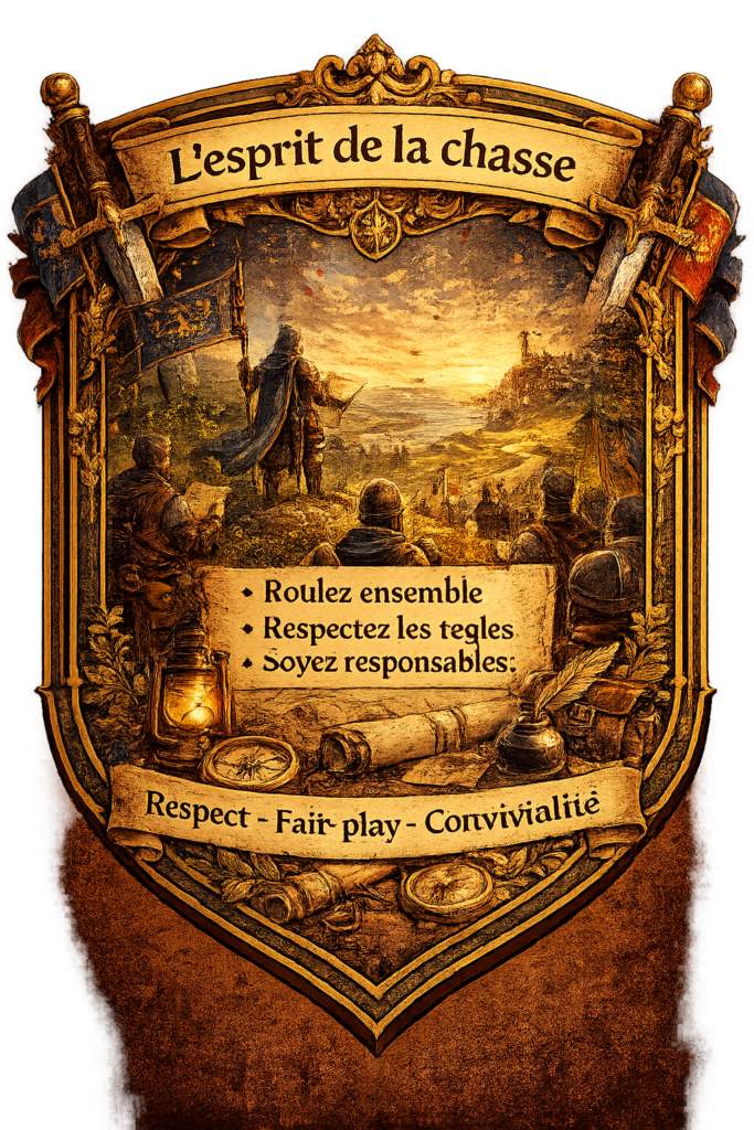 La Chasse se vit en équipe, rassemblant des passionnés de motos et de véhicules anciens, unis pour prendre la route et partager l’aventure.